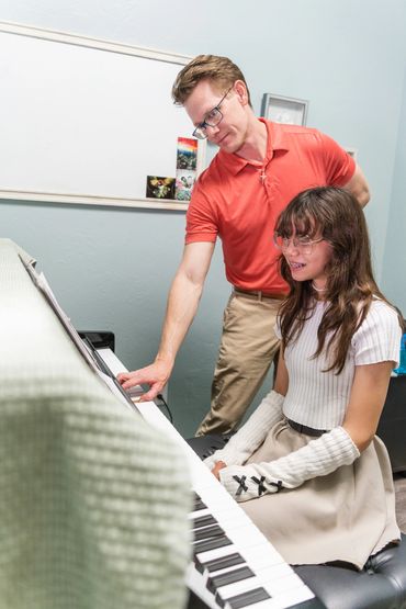 We believe students should experience the joy of making music right away! Even in the earliest lessons, beginners learn to play simple, recognizable songs that build confidence and spark excitement. Our teachers incorporate familiar melodies, step-by-step guidance, and hands-on creative activities such as rhythm games, movement, and listening exercises to make learning engaging and fulfilling. By combining early successes at the keyboard with playful exploration, students quickly develop a sense of musical accomplishment and stay motivated to continue learning and growing.